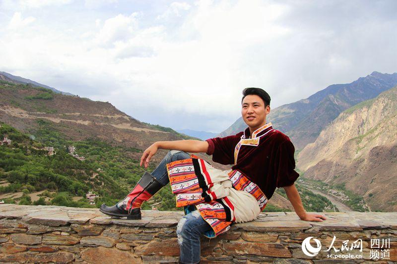 25岁的郎泽在丹巴县文化局工作,甲居藏寨宣传活动时会请他们来做宣传(朱虹 摄)