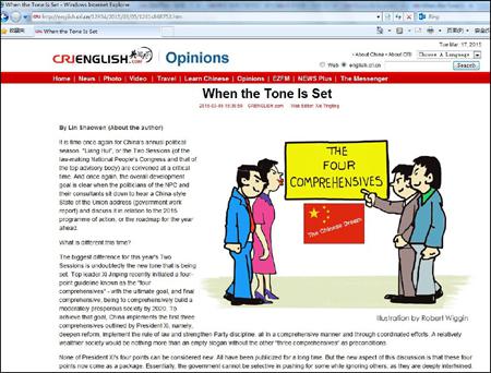 国际在线英文网推出“‘Four Comprehensives’, Through the Eyes of Foreign Med”、“定发展的调子(When the Tone Is Set)”和“现在开始行动起来(Now Action)”等稿件和评论。