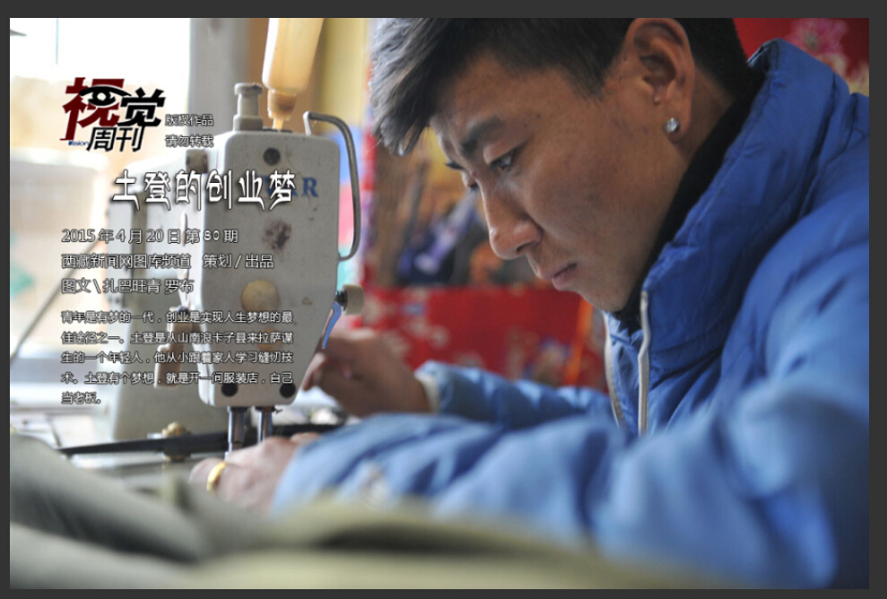青年是有梦的一代,创业是实现人生梦想的最佳途径之一。土登是从山南浪卡子县来拉萨谋业的一个年轻人,他从小跟着家人学习缝纫技术。土登有个梦想,就是开一间服装店,自己当老板。