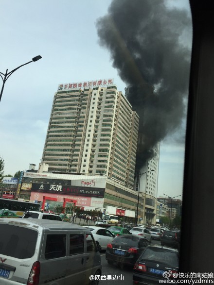 西安长安北路一大厦失火浓烟滚滚 空调外机引起