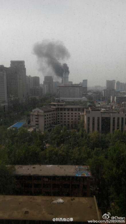 西安长安北路一大厦失火浓烟滚滚 空调外机引起