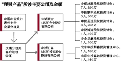 2013年9月,她与王先生等四人在农行次渠分理处客户经理李某的办公室购买了500万元的“政府工程理财产品”,期限为一年,收益为9%。合同显示,该投资计划名称为“中企华康股权”,受托管理方为“中诚联合(北京)创业投资有限公司”。