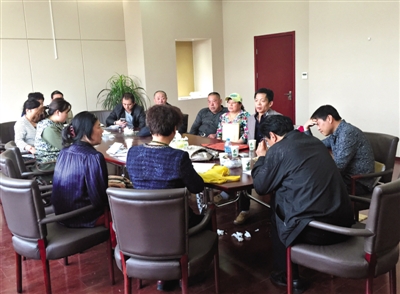 昨日,农业银行北京市通州支行次渠分理处办公室,十余名客户聚集。他们称从该分理处客户经理李某处购买理财产品,但到期后无法兑现。本版摄影/新京报记者程媛媛