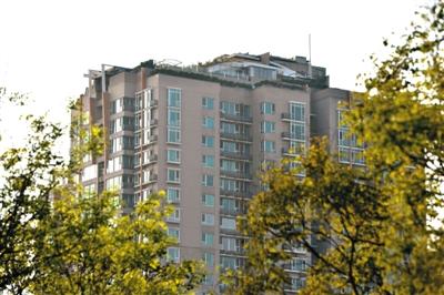 昨日,人济山庄楼顶,大片绿色植被高出了楼顶围墙一小截。 新京报记者 吴江 摄