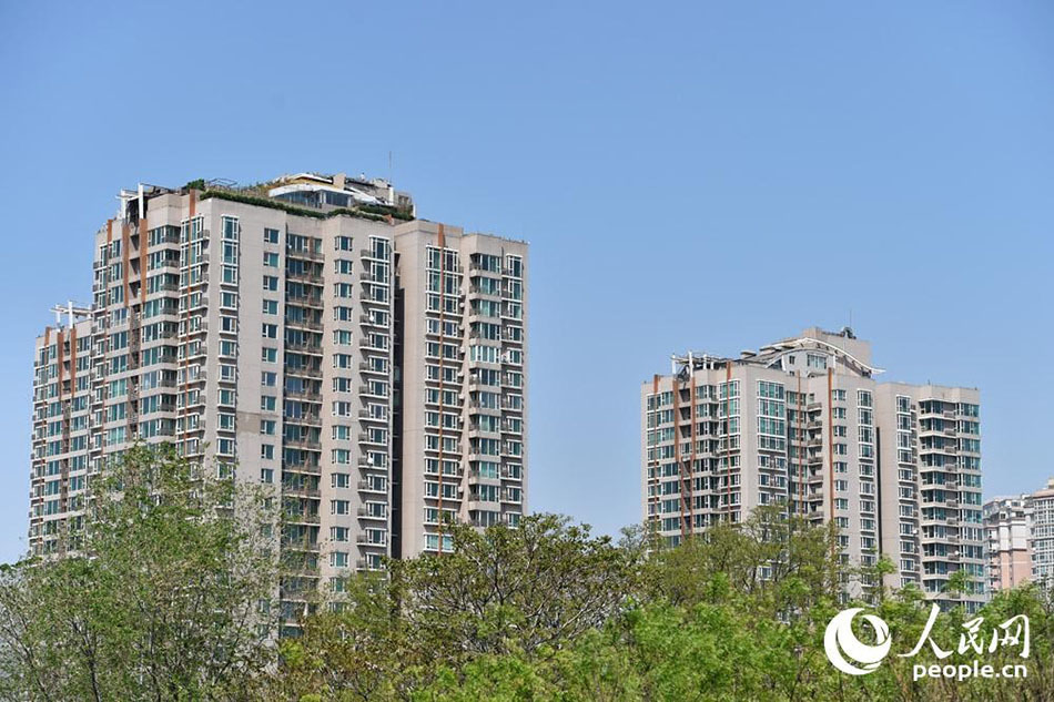 4月22日,北京人济山庄B座的屋顶又被栽种了绿色灌木。