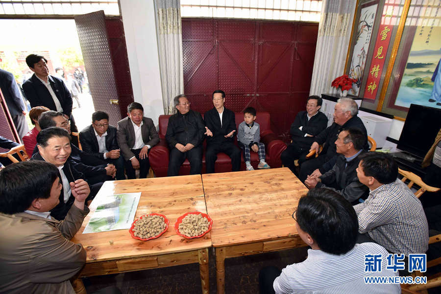4月22日至23日,中共中央政治局常委、国务院副总理、国务院南水北调工程建设委员会主任张高丽在河南调研南水北调工程建设管理有关工作。这是4月22日,张高丽走进九重镇桦栎扒移民新村调研和看望村民。新华社记者 李涛 摄