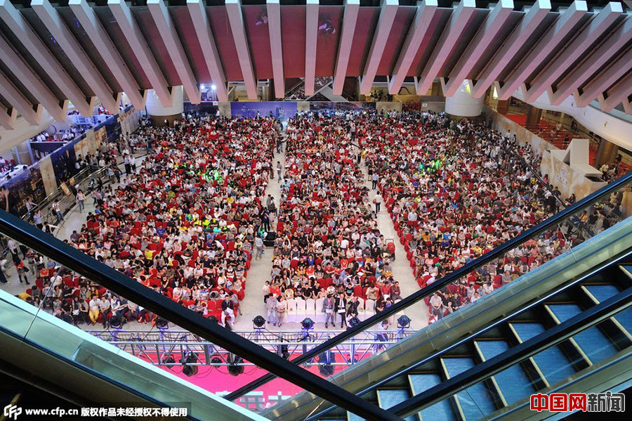 2015年04月26日,广东省深圳市,港铁·天颂在深圳市福田区大中华国际交易广场开盘,开盘当天推出约600套住宅单位,均价3.4万,吸引3000多人入场抢购,3小时卖光。雨歌/CFP