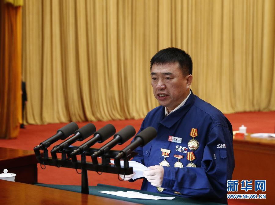 全国劳动模范和先进工作者代表依次登上主席台,党和国家领导人向他们颁发荣誉证书。长春轨道客车股份有限公司转向架制造中心焊工李万君代表全国劳动模范和先进工作者宣读倡议书,向全国广大劳动群众发出倡议,用劳动为实现中国梦添砖加瓦,在推进“四个全面”伟大实践中建功立业,争做有智慧、有技术、能发明、会创新的劳动者。