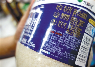 在超市里售卖的大米,包装上看不出新米与陈米的区别。新京报记者 郭铁 摄