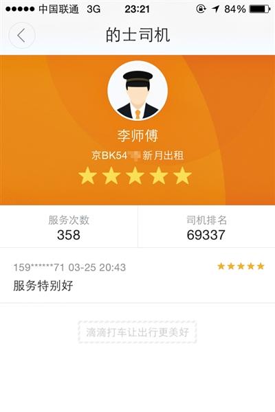 同样,记者向“滴滴打车”投诉在顺义遇到的黑车司机李某后,约一个小时过后,李某就找到并拨通了记者的手机号。