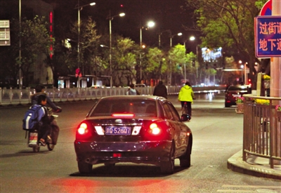 4月21日晚,顺义地铁站附近,图中黑色私家车使用“滴滴打车”抢单成功载客离开。经调查,该黑车注册打车软件所使用的车牌,属于首汽无障碍车队。新京报记者 何光 摄