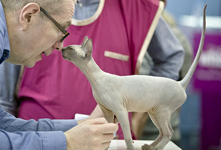 来自全球各个国家的250多只纯种猫咪26日当天在罗马尼亚首都布加勒斯特参加这里举行的2015年度国际猫咪展,从英国短尾猫到加拿大无毛猫,这些世界上稀有品种的猫咪们在展会上争奇斗艳,吸引了众多评委的欣喜目光。