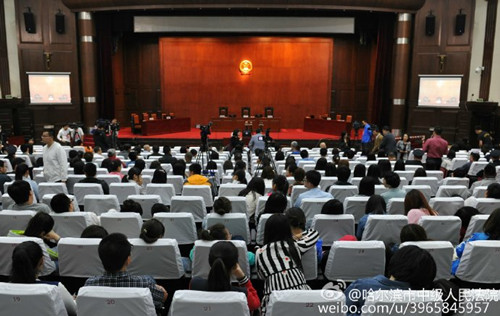 据黑龙江省哈尔滨市中级人民法院官方微博消息,哈尔滨市中级人民法院今日上午在第一审判庭公开审理被告人高玉伦、王大民、李海伟暴动越狱、故意杀人、故意伤害、故意毁坏财物、盗窃一案,审判长已宣布开庭。