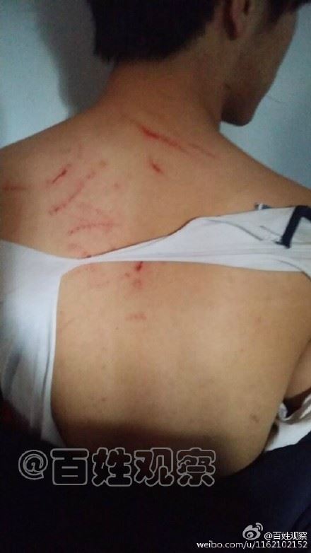 男学生背部受伤