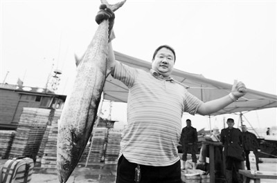 4月27日,山东省青岛市,两艘运鱼船在“鲅鱼之乡”沙子口渔村码头靠岸,带回满船鲜鲅鱼。