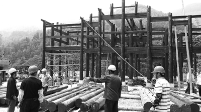 如何保证复原后的“江家大宅”与原规格一致?王宽告诉记者,主要是由古民居的卯榫结构决定的。由于各个木构件之间都是通过在原木上开凿榫眼对接,“差几毫米都不会吻合”。