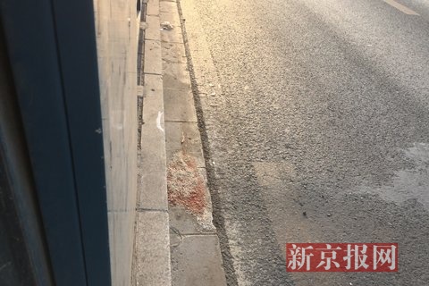 事发现场留有一片血迹 新京报记者 程媛媛 摄