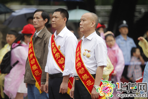 今(1)日,连日炎热的山城突然下起大雨,但清晨8时的人民广场上,来自南川区隆化第一小学校的500名优秀少先队员和留守儿童代表以及上百市民仍聚集于此,观礼“五一”国际劳动节升国旗仪式,共祝祖国繁荣昌盛。