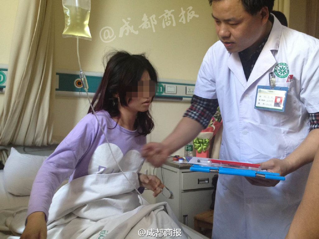 晚上8点,卢小姐躺在病床上,手臂、腿部和脸上都有明显淤青,经医生诊断,她有脑震荡,并且骨折。在送来医院之前,她多次呕吐并昏迷。