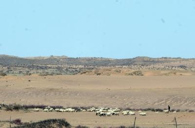 巴彦淖尔镇其其格家附近,只有少量的草供羊群吃。
