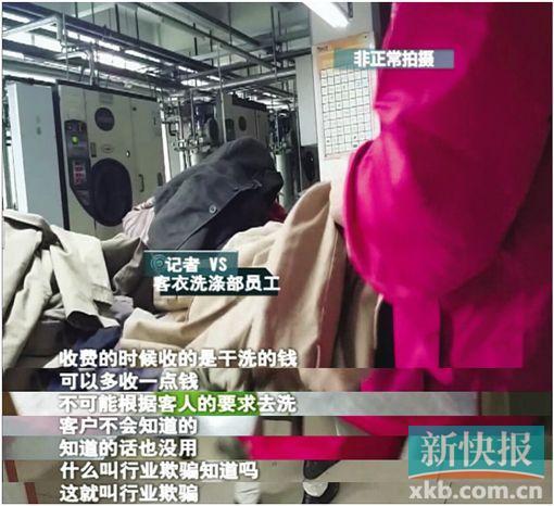 有员工表示,“所有送洗的衣服,百分之九十都是水洗”