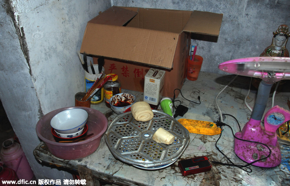 陈玉华老人和养女陈慧的吃食。摄影:吴克涛/东方IC
