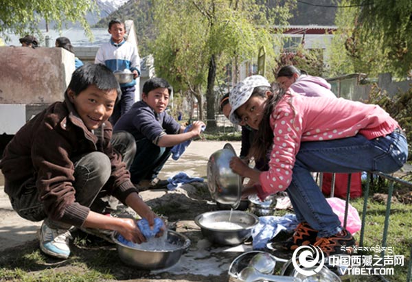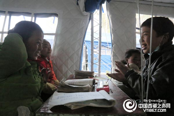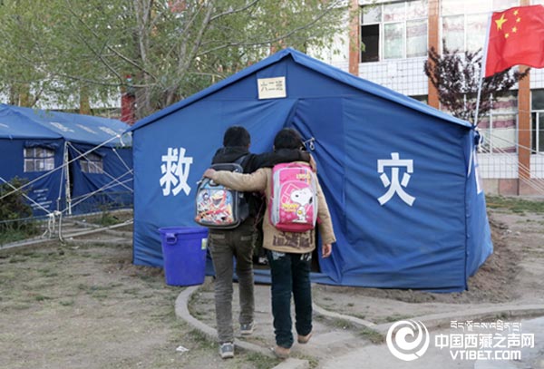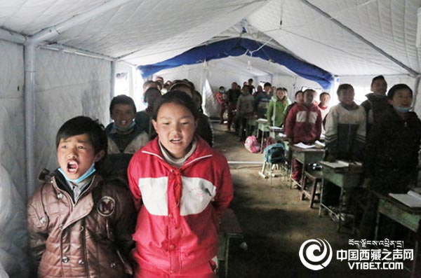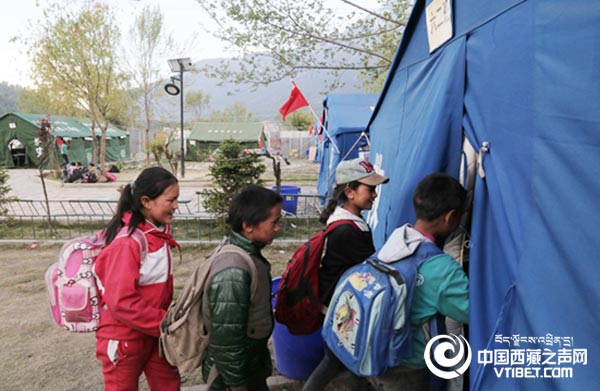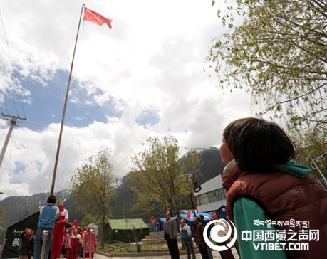 震后第6天,日喀则市吉隆镇完小的操场上搭起了一顶又一顶帐篷,鲜艳的五星红旗又一次升起,孩子们欢快的歌声再次荡漾在校园的上空……