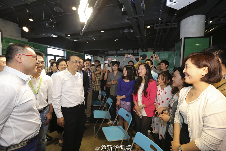 【李克强鼓励创业者:今天你们的路演,就是明天成功的预演】李克强7日在中关村创业大街3W咖啡考察时,走进拉勾网的路演现场。公司负责人介绍,这家仅有180名员工的招聘平台一年多就向互联网企业输送了150万人才。总理对他们带动大量就业大加赞赏。他鼓励创业者,今天你们的路演,就是明天成功的预演。