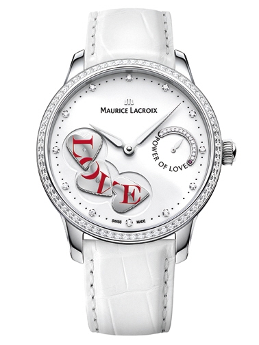 表盘左下方三个心形齿轮随着时间转动,渐渐拼出LOVE字样。