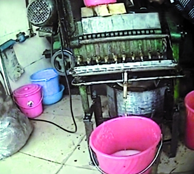 记者在广西梧州的批发市场里看到,仅一条街上就有5家花生油作坊。作坊里有一套榨油设备,可现场用花生榨油。这些油作坊不仅以花生油的新鲜、纯正来吸引顾客,而且价格也比正规油厂要低,生意相当不错。记者在广西梧州、广东肇庆两地走访了20多家油作坊,发现这里“纯正”的花生油低的8元一斤,高的要16元,普遍的是10元一斤。