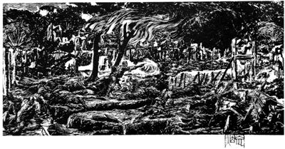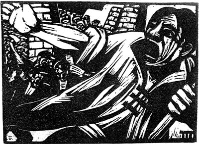 王琦版画《野蛮的屠杀》。
