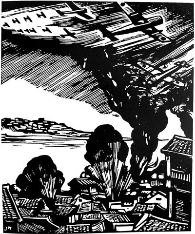 如果我们把版画创作视为一种战斗,那么,中国抗战版画家就可以说个个是战斗英雄;如果把它看作一种劳作,那么,他们人人都是劳动模范。倘若可以把版画艺术比作一株大树,那它也是傲然耸立于高山岩角的一棵久经风雨考验的常青树或不老松,而决不是毫无骨气、随风摆动的小草。或者,我们还可以把祖国和人民比作母亲,那么,中国版画家便都是无愧于伟大母亲的好儿女。如果在艺术史上有所谓“精英艺术”“先锋艺术”“前卫艺术”的话,我认定,中国现代版画艺术才真正是这种艺术,而版画家们便是祖国的前卫、革命的先锋和时代的精英。