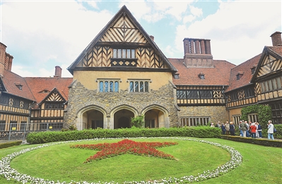 当地时间5月7日上午,记者驱车来到采西林霍夫宫。绿草掩映下的这座旧式建筑,门前草坪上保留着当年苏军布置的象征胜利的红星状花朵——保存历史原貌、尊重历史事实、还原历史真相,是德国人正视历史的正确态度。而其内部大部分空间被布置成为记录波茨坦会议举行过程的博物馆。会议厅和各国参会代表的办公室都保留原貌。