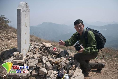 杨国庆向众人讲述自己在海拔1377米为“南口战役”中牺牲将士立下的石碑。 中国青年网记者 李拓 摄