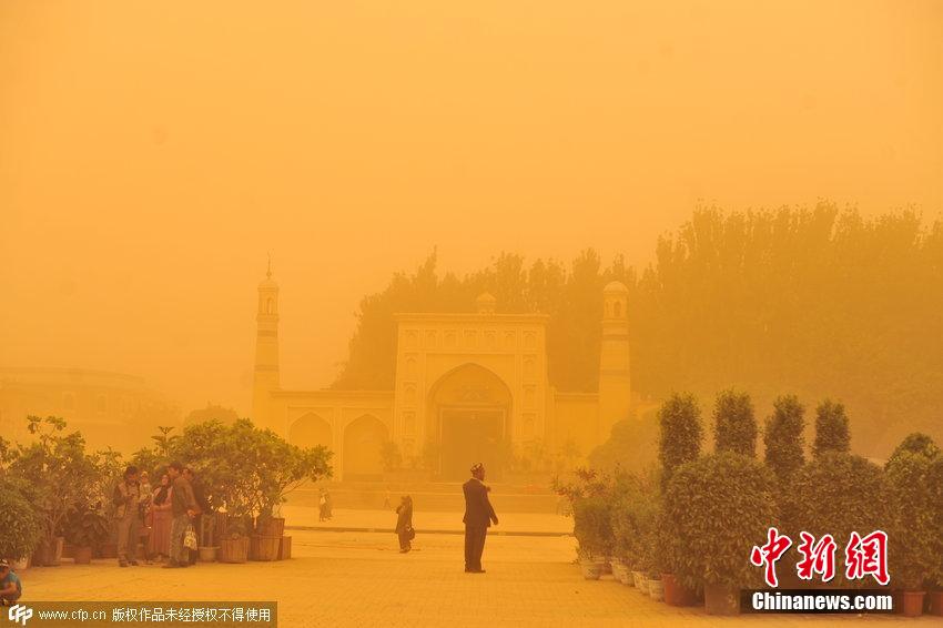 新疆喀什地区遭遇沙尘暴袭击 黄沙漫天