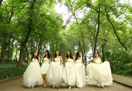 5月10日,安徽大学毕业班的学生们身着各种特色服装拍摄创意毕业照。大学毕业季的到来,毕业生把毕业照玩出各种花样,汉服、制服,婚纱等服装或清纯可爱、或端庄优雅。据了解,此举是用来纪念他们即将逝去的大学时光。