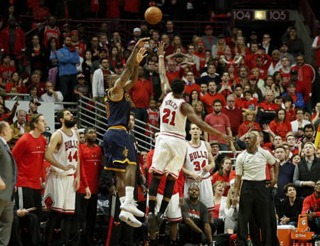 詹姆斯1.5秒压哨绝杀 骑士力擒公牛总分2-2