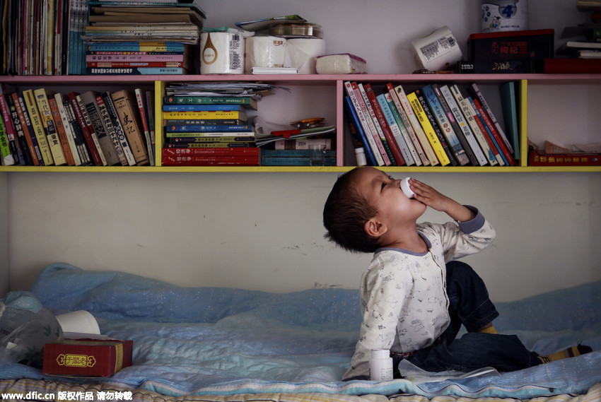 2015年5月11日报道,“医生说,不动手术很难挺到8月。”5月8日,在汉寿一中的门卫室,张薇一边给3岁的图图喂面条,一边接受记者采访。这位32岁的母亲,为挽救儿子生命一直未放弃,可巨额的医药费令她濒临绝境。自从去年诊断为白血病后,图图大部分时间在化疗,如今病情即将复发。金钱、时间,残酷地横亘在这个幼小生命面前。张薇和丈夫都是中学教师。2011年,张薇的母亲患恶性组织细胞病到长沙治疗,花了十多万,因肿瘤恶化去世;2013年,张薇的父亲被诊断为胆管癌,动手术用去20万,现在仍吃药治疗。2014年6月,张薇发现儿子有些异常,“经常发烧,脚无力,站都站不起来。”医院的诊断结果是:急性淋巴细胞性白血病。张薇将儿子送到长沙,8个月11次化疗用去30余万元。2015年2月,按照治疗方案,图图出院,回家吃药。已经请假一个学期的张薇回到讲台。丈夫在偏远的乡镇中学上班,图图由张薇一人照料。每天早晨6点,张薇起床给儿子做早餐,用青菜汤下面条。喂完药后,她将孩子放在自行车后的小椅座,两人一起去学校。张薇教高二的化学,学生们说喜欢她的课。上课时,她站在讲台,图图则坐在教室前的椅子上。当图图不舒服哭闹时,张薇怕影响到学生学习,便会暂时抱着他继续上课。不上课,一月她只能领830元的“财政工资”,上课则可领到2300多元,“能挣一分是一分。”儿子治病以来,张薇一家已负债累累。为了省钱,她自己学会了给儿子注射。到今年3月,她决定把房子卖掉。3月26日,医院的复查结果显示,图图体内的残留白细胞超高。张薇得知,从复发到恶化,“就是两三个月时间。”“我妈妈就是因为钱的事耽搁了手术。”张薇说。由于中华骨髓库和台湾骨髓库均没找到相匹配的供体,只能进行半相合骨髓移植。张薇决定提供自己的骨髓,但手术费用对这个普通家庭来说难以承受,“首先得交35万,总共可能要70万。”张薇将住房卖了,扣清贷款有18万元——自己租住在县城一处民房。家里的电视机、电冰箱、沙发也被她折旧出售,卖得5000元,“除了书和衣服,能卖的都卖了。”加上学校工会、教师和一些学生的捐款,张薇目前凑了30万元,但距手术费用还差40万元。张薇不想放弃,但现实却很残酷。5月8日,张薇教过的一些学生在网上发布《千名学子联名求助信》。一名学生留言:“请不要让一个善良的人承受所有苦难,请不要让一个伤痕累累的母亲失去生活希望。”陈正/东方IC