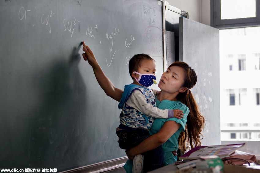 2015年5月7日,32岁的母亲张薇是湖南汉寿县一中一名化学教师,自从3岁儿子图图去年6月被确诊为急性淋巴细胞性白血病后,她便奔走在医院和讲台之间。上课时,她站在讲台,图图则坐在教室前的椅子上。当图图不舒服哭闹时,张薇怕影响到学生学习,便会暂时抱着他继续上课。儿子治病以来,张薇一家已负债累累。为了省钱,她自己学会了给儿子注射。到今年3月,她决定把房子卖掉。