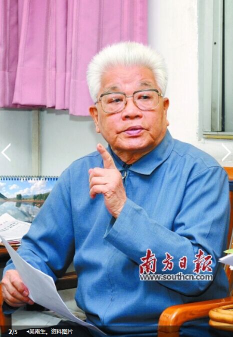 吴南生,1922年生于汕头市,1936年参加革命,1937年加入中国共产党,1944年赴延安中央党校学习。抗日战争胜利后由延安赴东北,1949年随军南下,曾任广东省委宣传部长,中共中央中南局副秘书长、农办主任。“文化大革命”结束后,任广东省委常委、省委书记(时设省委第一书记)。1979年,倡议筹办广东3个经济特区,兼任广东省经济特区管理委员会主任,深圳市委第一书记、市长。1985年起,历任广东省第五、六届政协主席。