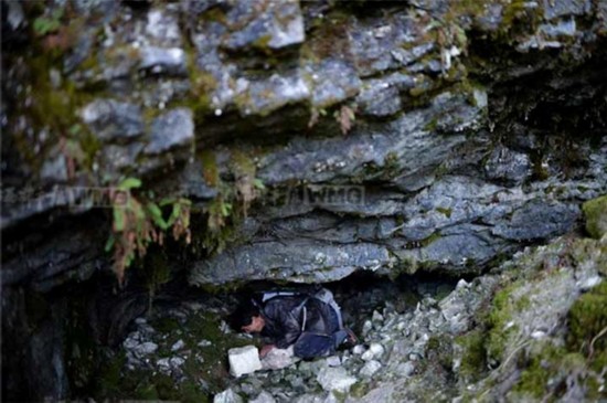 燕窝洞有三个入口,距离最近的洞口隐藏在岩腔下不到50厘米高的斜坡处,人必须匍匐进入。