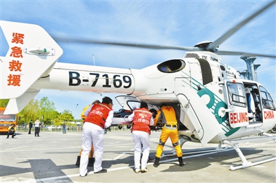 昨天的演练重点模拟人群密集场合的突发情况救援,在设定的地面塌陷场景中,人群慌乱中发生了踩踏事件,紧急救援志愿者报警,拨打999急救电话。999急救车抵达现场,现场伤员伤情严重,999启动了航空救援,救援直升机到场将伤员运往医院抢救。
