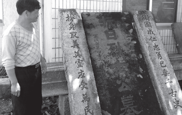 夏四林说,数十年前,村里挖水潭灌溉农田,将烈士公墓的墓碑拿来埋地下做水利设施。2013年底,夏四林等人清理水塘时,根据老人指点,将这几块墓碑找到,挖了出来,放在家门口,供村民和外人瞻仰。