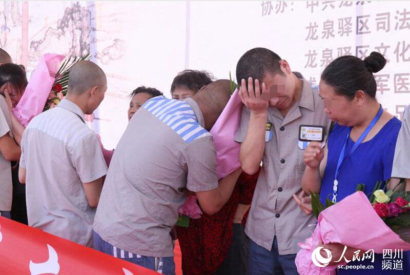 当天的活动上,川西监狱党委书记、监狱长陈小平与四川旅游学院党委副书记、纪委书记杨祥禄共同举行了“监校互动友好战略合作基地”揭牌仪式,成都黄再军医院院长黄再军捐赠了《孝行天下》、《孝心不能等待》孝道书籍500册,并向服刑人员发出孝道倡议书。14名服刑人员现场向帮教母亲敬献了康乃馨鲜花,表达对母亲的感恩敬孝之心。现场服刑人员与母亲相拥而泣,泪流满面,场面十分感人。(记者 陈曦)