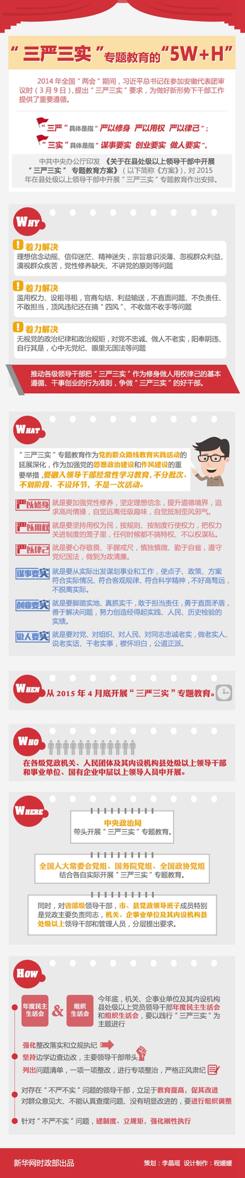 更为特殊的是,“三严三实”专题教育虽然是党的群众路线教育实践活动的延展深化,但与后者不同的是,“三严三实”教育在各级同步进行。这意味着,当省(区、市)委书记们开始讲“三严三实”专题党课时,手里没有以往详细的“全国统一教材”,他们有的是习近平总书记关于“三严三实”的讲话,和省(区、市)委书记们自己对当地干部作风、政治生态等问题的思考,以及对当地发展中问题与机遇的了解。