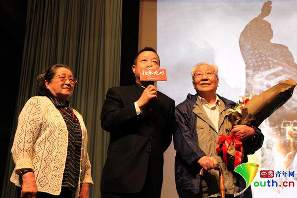 5月12日《旋风九日》首映礼上,傅红星特将父母请上台表达感谢之情。 中国青年网记者 康佳 摄
