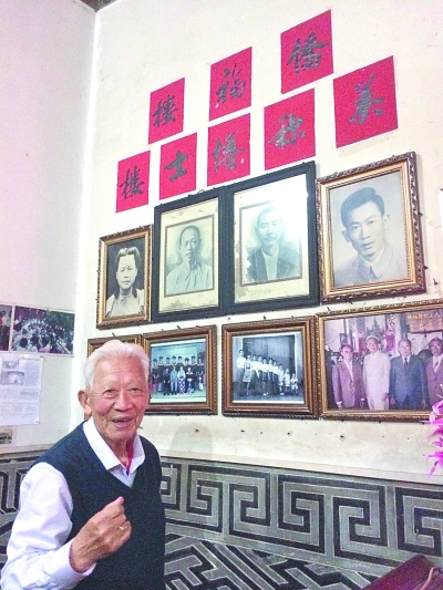 傍晚时分,天边还留有落日的余晖,88岁高龄的江万芳站在路边凝望着“土楼王”承启楼西侧的一座圆形土楼,顺着他的目光,记者看到了“侨福楼”三个字。江万芳突然开口说:“这一家出了11个博士,这个楼也叫‘博士楼’,你们快进去看看吧!”
