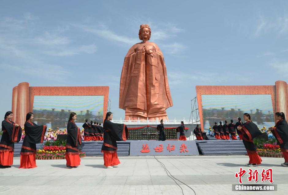 5月17日,山西省晋中市太谷县,民众瞻仰巨型孟母铜像。当日,由中华母亲节促进会、山西中华文化促进会等单位共同举办的第四届太谷孟母文化节暨中华母亲节在孟母家乡——山西太谷拉开帷幕。据史料记载,孟母仉氏,山西太谷县范村镇东西仉村人。孟母教子有方,“孟母三迁”、“断织喻学”的典故,不仅成就了孟子一代“亚圣”,也使孟母成为名垂千秋的中国贤母典范。本次活动的主题为“学国学经典,传母教文化,行孝亲敬老”。韦亮 摄