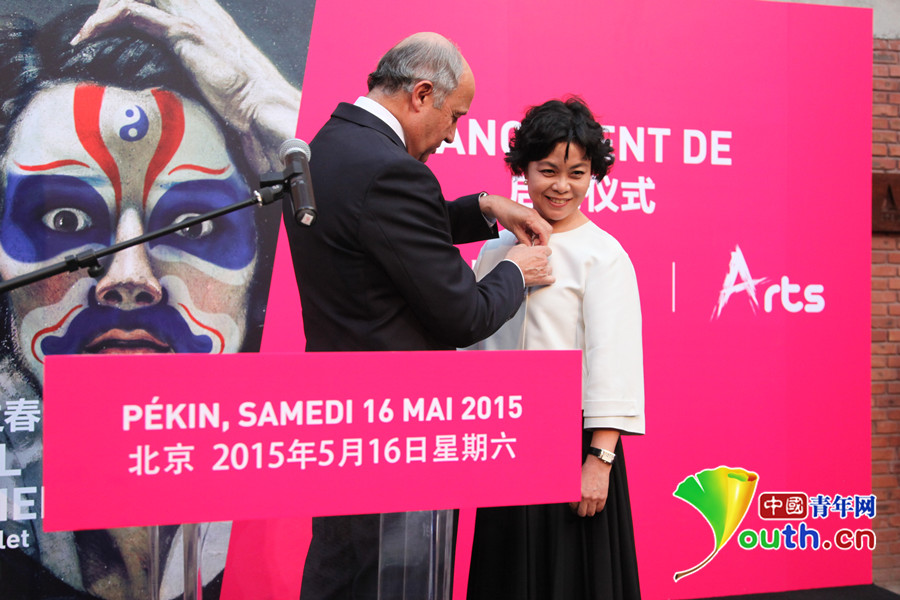 法国外交与国际发展部长洛朗·法比尤斯为铁凝颁发法国艺术与文学骑士勋章。 中国青年网记者 廖书曼摄