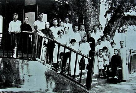 1932年朱自清(左数第十位戴眼镜者)与亲友在普陀山。